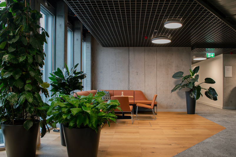 Interessanterweise war unsere Entscheidung zunächst rein ästhetisch, aber sie hat letztlich beeinflusst, wie wir den Raum nutzen. Gäste bemerken das Pflanzenkonzept sofort. Es ist eines der ersten Dinge, über die sie sprechen, wenn sie unser Büro betreten!